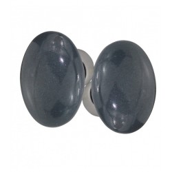 Ensemble de poignées double OVALE porcelaine de LIMOGES Gris poivre sur une cuvette nickelée brossée