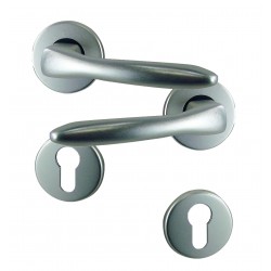 Ensemble de poignée de porte VARS Alu argent sur rosace trou cylindre