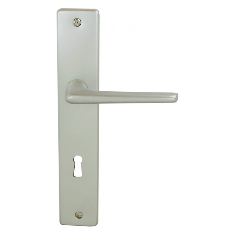 Ensemble/Plaque SAMOENS en Aluminium finition Argent fonction Serrure avec entraxe de fixation à 195 mm